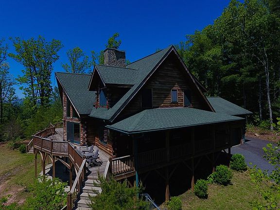 Custom 5 Bedrooms log cabin on 2+ Acres in the beautiful Clarks Chapel community. Enjoy the long range views from the privacy of your deck and there is even a level fenced yard for the kids or pets. Just over 3000 Sq Ft finished on two levels with a full unfinished basement with completed bath just waiting to be turned into additional living space. Open Floor plan with stunning custom ash & walnut hardwood floor details and beautiful wooden railings on stair cases and upper loft railing. Kitchen features granite counter tops, spacious pantry, large island, Thermador 6 top gas range with grill space as well and GE Monogram appliances as well. Just off the kitchen the wrapping deck extends including a covered attached gazebo to entertain and grill outside. Living room offers a large stone wood burning fireplace with large windows to let the light and view inside from the deck. Dining area has a Yodl gas long woodstove for character and added warmth on those cool winter mornings. Master bedroom also has its own gas log fireplace. Multi-zoned HVAC system to insure comfort. 2 Car attached garage with entry into the main. Paved to the door in a well developed neighborhood.