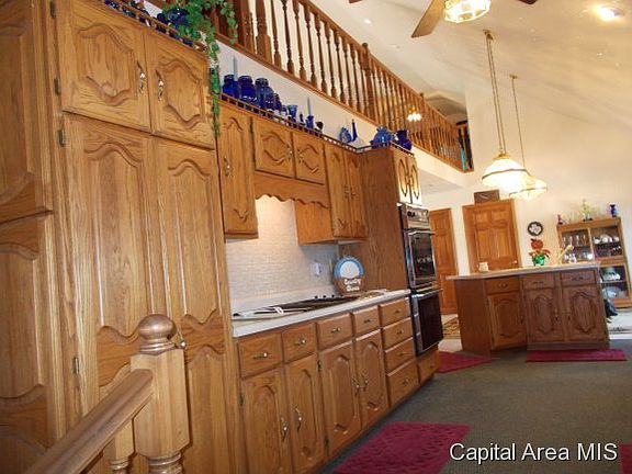 WONDERFUL 1.5 STORY, 20 YEARS NEW-W/A CURRENT FLOOR PLAN. IT'S OPEN W/VAULTS, CAT WALKS, GORGEOUS OAK KITCHEN, SUNKEN DEN, PATIO DOORS TO A NEW MAINTENCE FREE DECK& LOWER LEVEL WALK OUT TO A PATIO. FROM THE DECK OR LL PATIO RELAX & ENJOY THE LAKE FRONT VIEW. THIS WILL DRIVE THE SALE, ALTHOUGH THE 3 CAR GARAGE PLUS A HEATED WORK SHOP WILL BE HARD TO BEAT. ASHPALTED DRIVE IN GREAT CONDITION, SOLID OAK KITCHEN IS PRETTY, 6 PANEL DOORS, MAIN FL.LAUNDRY, 4 BEDS, PLUS AN OFFICE, LANDSCAPED, NICE !