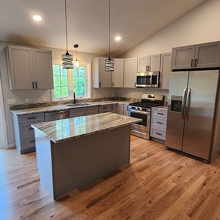 BRAND NEW CONSTRUCTION - 28 X 46' RANCH HOME in Warren, MA. The ease and convenience of one story living with additional living spaces in the lower level can soon be yours. This Ranch home has 3 bedrooms and 3 full baths. The fully applianced kitchen (refrigerator, range, dishwasher and microwave) has beautiful Wolf gray cabinets and granite countertops. There's a cathedral ceiling in the kitchen, dining and living room area. Hardwood flooring, tile in the bathrooms and vinyl plank flooring in the lower level. Forced hot air propane with AC is a plus in the heat waves of New England. The dining room has French doors that lead out to a deck to enjoy your barbeque and backyard. The walkout lower level has a full bath, family room and office with access to the 2 stall garage located under the house. Living in a home that no one else has lived in before is waiting for you upon completion!