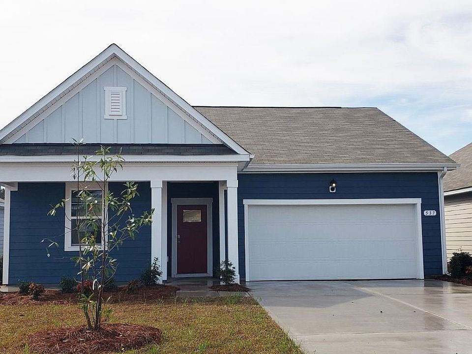 Our Cali plan is the perfect one level home with a beautiful, open concept living area for entertaining. The kitchen features granite countertops, oversized island, 36" cabinets, walk-in pantry, and stainless appliances. The large owner's suite is tucked away at the back of the home, separated from the other bedrooms, with double vanity and 5' walk-in shower in the private master bath. Enjoy the coastal air on the spacious covered rear porch. This is America's Smart Home! Each of our homes comes with an industry leading smart home technology package that will allow you to control the thermostat, front door light and lock, and video doorbell from your smartphone or with voice commands to Alexa. *Photos are of a similar Cali home. (Home and community information, including pricing, included features, terms, availability and amenities, are subject to change prior to sale at any time without notice or obligation. Square footages are approximate. Pictures, photographs, colors, features, and sizes are for illustration purposes only and will vary from the homes as built. Equal housing opportunity builder.)