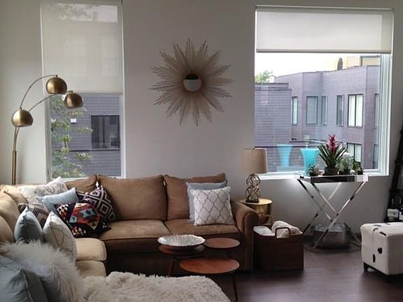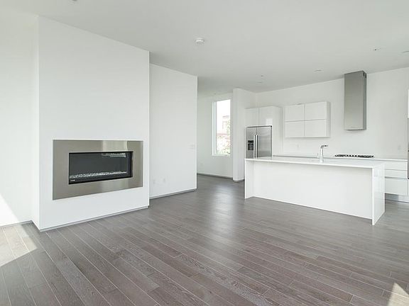 Ultra contemporary Penthouse unit with 3 sunny exposures. Unit features 10Ft ceilings, 11 oversized windows, gas fireplace, chefs vented kitchen with modern European Cabinetry, study area , roof deck, garage parking and great closet space. Included in rent is a separate 90SF private storage room. Unit has wide plank wire brushed oak flooring throughout. Custom solar shades. Central Heat and AC. Washer and dryer in unit.