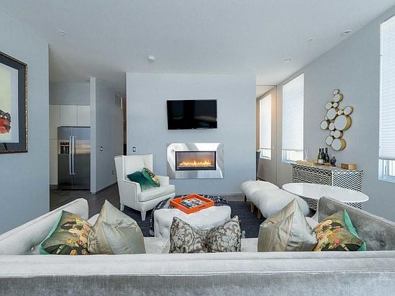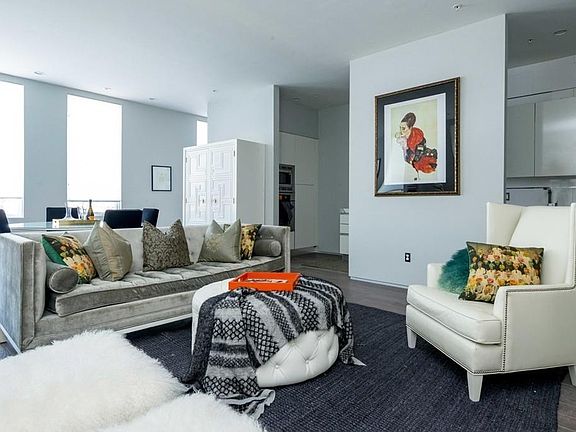 Elevator building with ultra contemporary amenities include huge 10+ foot ceilings and over sized windows flood this space with sunlight. European styling . Large open kitchen with pure white cabinetry and stainless Bosch appliances Calacatta marble counters. Graceful entrance foyer with huge closets. Master en suite has many custom wardrobes and offers incredible storage. Large spa style master with walk in shower and glass enclosure. Second bedroom is generously sized and has custom wardrobes. Private roof deck offers incredible skyline views accompanied by a share common area that has a gas grill and water supply. Additional private storage room just outside your front door and an over sized storage unit downstairs. One full GARAGE parking space included. In unit laundry adds to the comfortable lifestyle. TAXES due not include residential exemption.
