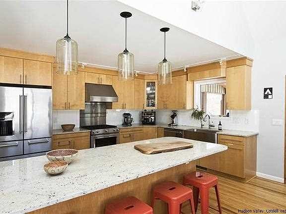 Beautiful architect-designed, light-filled contemporary home, privately sited down a long driveway on over 10 lovely acres. Layout really works: entryway flows into living, dining, & gourmet kitchen, all open floor plan, with soaring ceiling and modern lines. Two bedrooms, one currently being used as an office and full bath complete the main level. Spacious master BR and BA upstairs with small common area for office, meditation space, etc. The LL with cork floors has a walkout, full bath and storage room, and is not included in sq ft. Owner-owned solar panels, hydro and central air contribute to its efficiency and there's a fireplace for coziness in the LR.The space belies the square footage. Sellers have improved the property in the following ways: Built a substantial 2 car garage, replaced front & side decking, all new appliances, replaced air conditioning compressors, installed cork floor on LL, stone patio with pergola, fire pit, created trails through the property, shed and Haiku ceiling fans. The lot has a lovely open flat area off the 560 sq ft screened in porch for gatherings or a pool site, if one desires, surrounded by a mix of woods with walking paths, interesting slopes, rock outcroppings, moss, ferns, specimen trees, and an enclosed vegetable garden along the length of the house. This home is close to the charming villages of Cold Spring and Garrison, 20 minutes to Beacon. Cold Spring is 75 min. to NYC on Metro North - yet the property feels a world away.