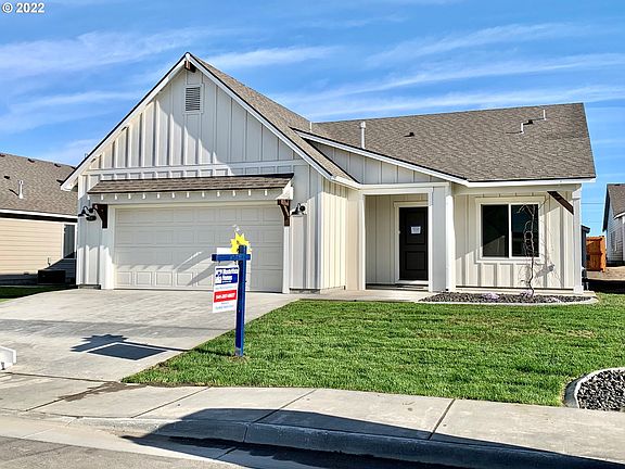 LOT:LE19 - Gorgeous modern farmhouse in the Legacy neighborhood in Hermiston built by award winning builder MonteVista Homes. The Charlotte is a 1701 SQFT home with 4 bedrooms, 2 baths, open living spaces and large central kitchen with pantry, island, stainless steel appliances and quartz countertops. This home also features a spacious master suite with double sinks and walk-in closet as well as high efficiency gas forced air heating, A/C, gas fireplace, and covered patio.
