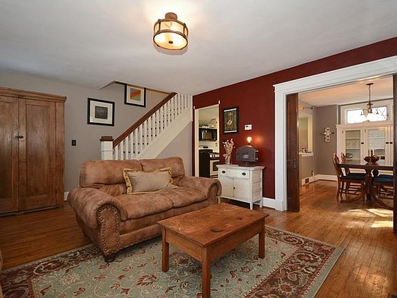 Step back in time, and enjoy modern conveniences in this most charming home on a quiet street. Walk to shops, restaurants, the Library, Post Office and enjoy quick access to I-79. As you approach this home, the first thing you'll notice is the large front porch where you can sit and enjoy your beautiful neighborhood. As soon as you enter, you'll notice the beautiful hardwood floors which are present in every room except for the kitchen and baths. The living room is so cozy with a decorative fireplace, built-in bookcases and stained glass windows. It's open to the dining room, but there are lovely wooden pocket doors if you'd like more privacy in either room. The dining room features a bay window and built-in china closets. The kitchen is open to dining room and features updated lighting, new hardware, and new SS appliances (refrig not included). There is plenty of counter space and cabinetry for the serious cook, too. A 1st floor powder room and laundry are so convenient. A rear door opens from the laundry to the rear porch. Up the lovely staircase to the 2nd floor are 2 large bedrooms with huge walk-in closets. The sellers just remodeled the hall bath in a grey/white color scheme with new bath, subway tile surround, new fixtures and new laminate waterproof flooring. The entire exterior was painted in 2016. The sellers did the heavy work too with new drain lines and concrete in basement also in 2016. Part of the basement is used for a game room, and the other part is a workroom. There is also an unheated storage room in the basement with a walk-out - perfect for storing your tools and lawn equipment. A new roof was installed in 2010. A lovely patio was installed in the side yard 2012 which is perfect for relaxing and entertaining. This home is air-conditioned. This home could easily be converted to a 3 bedroom, as it originally was 3 bedroom and was converted to two by a previous owner.