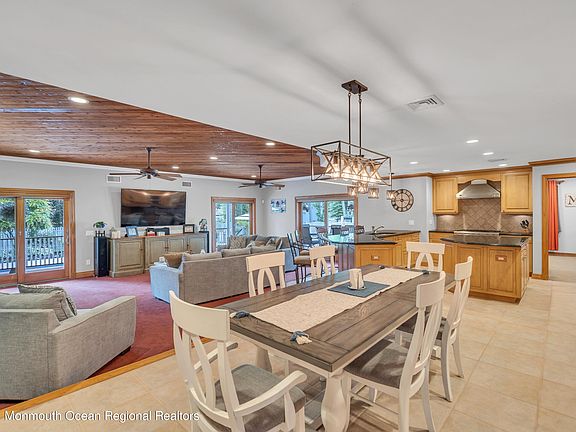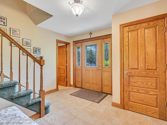 Remarkable 5/6 bedroom, 2.5 bath custom Colonial.This beauty offers remarkable craftsmanship. Nestled in on nearly 1/2 acre property, in a secluded country-like setting in the most desirable section of Herbertsville. This home was modernized in 2001 & features a spacious family room w/rough-sawn cedar ceiling & custom wood-burning fireplace w/reclaimed barn mantelpiece. Offering an open floor plan which includes a stunning gourmet kitchen w/center island, high end cabinetry, Thermadore double wall oven, warming tray, 6-burner chef's range & walk-in pantry. French doors open to an Irish Pub w/hardwood floors & sliders leading to the most stunning resort like yard. Featuring a mahogany wrap around porch w/sunken hot tub, gorgeous