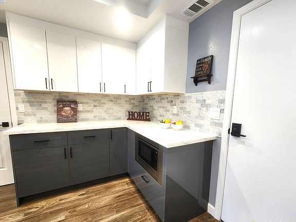 Quiet, turnkey end unit T/H, remodeled in 2022 for approx. $125,000 to perfection. Beautifully positioned at the end of the street. The front door opens to a premier open space & hiking trail to the hill, offering a private outdoor escape. Overlook the rolling hills. Only one side has a neighbor. The modern kitchen has state-of-the-art European cabinets, glass subway tile backsplash, recessed lights, gleaming floor & baseboard. Breakfast nook features modern pendant lights & quality quartz countertops. Waking up every morning to enjoy the magnificent sunrise on the horizon from the primary bedroom. Quality double-pane sliders & windows throughout. The slider leads to a tranquil, premium lot backyard with flagstone flooring, which is great for relaxation after a long working day. The side gate opens directly to the greenbelt open space. Primary suite bath & Hall bath include glass shower door, showerhead, tile enclosure, toilet, vanity, lights & faucet, and barn sliding door. Powder room w/quality custom tile wall, vanity, bathroom fan, & sink faucet. Other upgrades include plantation shutters, ceiling fans, recessed lights throughout, custom finishes on stairs, custom tile F/P & gleaming floors—minutes from the top-rated Coyote Creek Elementary school, park & Black Hawk Plaza.