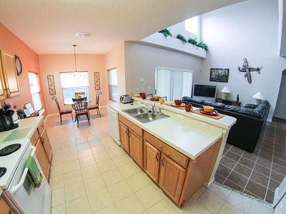 Beautiful 5 bedroom, 3 1/2 bathroom 2 story home on a very popular gated community close to all amenities. This home has been very well maintained with new tile covering the entire first floor, new carpet everywhere else and new paint inside and out. The sliding patio doors lead out onto a large covered deck area that has been extended both sides overlooking the heated pool and spa, the perfect place to relax after a long day in the sun. Currently used as a vacation home there are owner bookings that can convey but it would also make a great family home with plenty of space for everyone. Easy to show, call today.