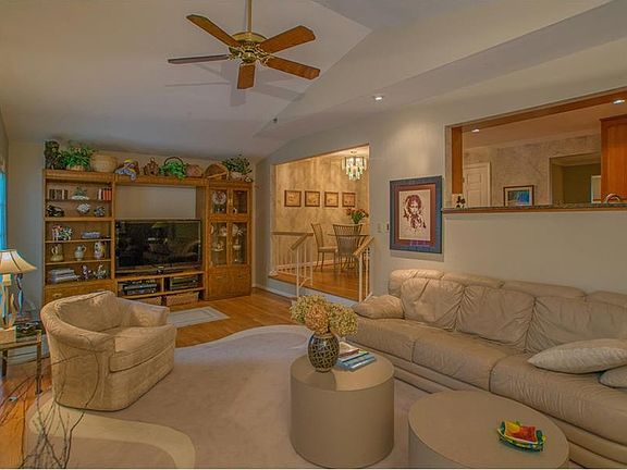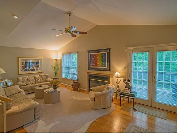 Totally updated Woodridge townhouse with 3 bedrooms, 3 1/2 baths, gourmet cherry kitchen featuring stainless appliances and large separated eating area, hardwood floors throughout main level, sunken family room with cathedral ceiling, gas fireplace, and doors leading to a large private deck overlooking a level yard and woods. Oversized master bedroom with large walk in closet plus a 2nd double door closet and beautiful new bath featuring a soaking tub and separate ceramic tiled shower. 1st floor freshly painted, finished gameroom with a wall of built in closets.and integral 2 car garage. The entire unit is spacious, light, and beautifully maintained.