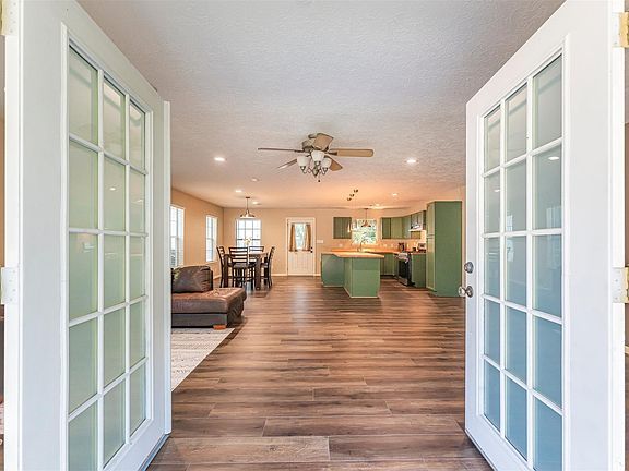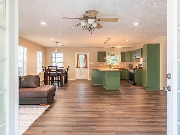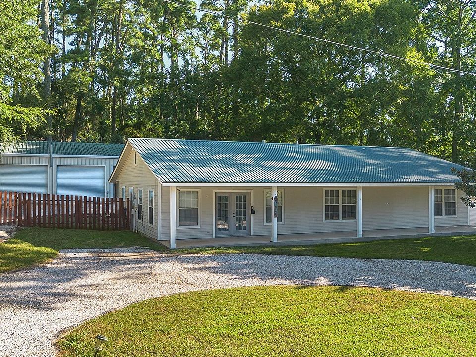 Beautifully updated single story home with metal roof features expansive covered front and back porches that are perfect for relaxing. Inside you will find 3 large bedrooms and 2.5 bathrooms, including a jack and jill bathroom between the secondary bedrooms. The open concept kitchen, family room, and dining room create an inviting flow for gatherings while the updated kitchen and vinyl plank flooring add modern style. The oversized laundry room includes washer and dryer and plenty of room for storage. The primary suite is a true retreat with doors leading to the back covered porch and a large bathroom offering double sinks, extra counter space, jetted tub, and separate shower. Plenty of storage in the fully decked attic. Outside the 25x42 pad includes a shop provides parking for cars, boat, or golf cart plus extra storage, and patio. The tree lined fenced backyard is private retreat. Launch your boat from the neighborhood park and spend the day relaxing on beautiful Lake Conroe