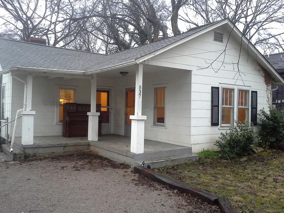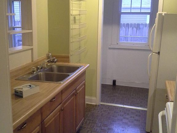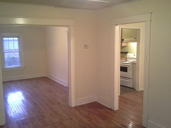 Original farmhouse-style single family house has shady yard and off-street parking. Unusual open floor plan requires creativity for 2 bedrooms. Hardwood floors in all living areas.