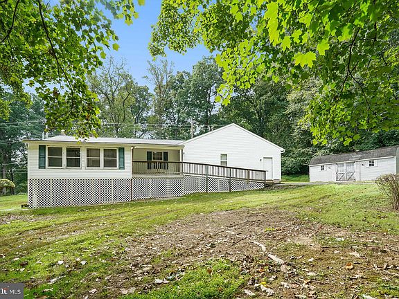 Well maintained 2 or 3 bedroom 1 bath rancher with over 1700 sf of living space on 4 acres (INCLUDES TAX ID 0808005036)! Home features an oversized 2 car detached garage with extra high ceilings, a mini split for heating and air, and a half bath-perfect for the car enthusiast. Main level features 2 bedrooms...one of which, the wall was taken out to make 1 large bedroom, so could easily be made back into a 3 bedroom, and a full bath in hallway. Eat-in kitchen has newer stainless steel appliances (except for dishwasher). Walkout basement has pellet stove, propane heater and pool table-just needs flooring. Large enclosed porch off rear of home has propane heater. HVAC is less than 5 years old. 22 KW whole house generator included. Large circular driveway. No HOA. RS Middle and high school district (buyer to verify). Close to APG, Harford County, and PA state line. Nearby fishing and Great Wolf Lodge.