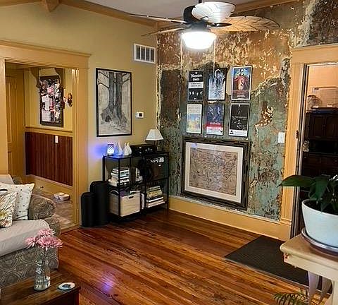 This apartment, 537 Oglethorpe Ave, Apt -2, Athens, GA 30606 is a truly unique, charmingly renovated, and spacious 1BR/1Ba apartment located on the 2nd floor of a grand (over 5000sf), Queen Anne-style, Victorian home; which was long ago repurposed as an apartment building with 6 apartments. Apartment-2 has an abundance of natural light let in through large windows, well appointed ceiling fans and light fixtures throughout, beautiful heart pine floors, old patina plaster walls and an antique mantel in LR. Further, there's an artful but modern kitchen with stainless fridge and gas stove, a bath with tub/tile shower combo and vessel sink, as well as found objects up-cycled and used decoratively throughout. Located in the heart of Normaltown, 1 block from the 30 acre Bishop Park and a 58 acre beautiful historic campus (currently the site of UGA's Health Science campus & Medical School), surrounded by lovely historic buildings dating to the 1800s and beyond. The house is within easy walking distance of the Normaltown neighborhood restaurants, bars, shops, YMCA, & Piedmont Athens Regional hospital . This lovely Victorian house sits on a very large, park-like lot with a shady bamboo forest and a private, undeveloped meadow. Owners pay for water, trash, recycling and leaf/limb pickup. It truly must be seen to appreciate. Owner's husband is a licensed Realtor in Georgia