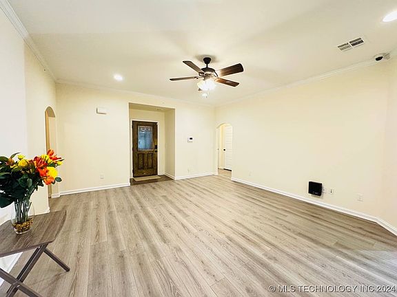 Welcome to a charming home in Mannford. This residence features 1,341 square feet, with three bedrooms and two bathrooms. The kitchen has ample counter space and opens to a private patio.The master suite includes a luxurious bathroom with a separate shower and bathtub, plus two walk-in closets. Enjoy a peaceful backyard with nature views.