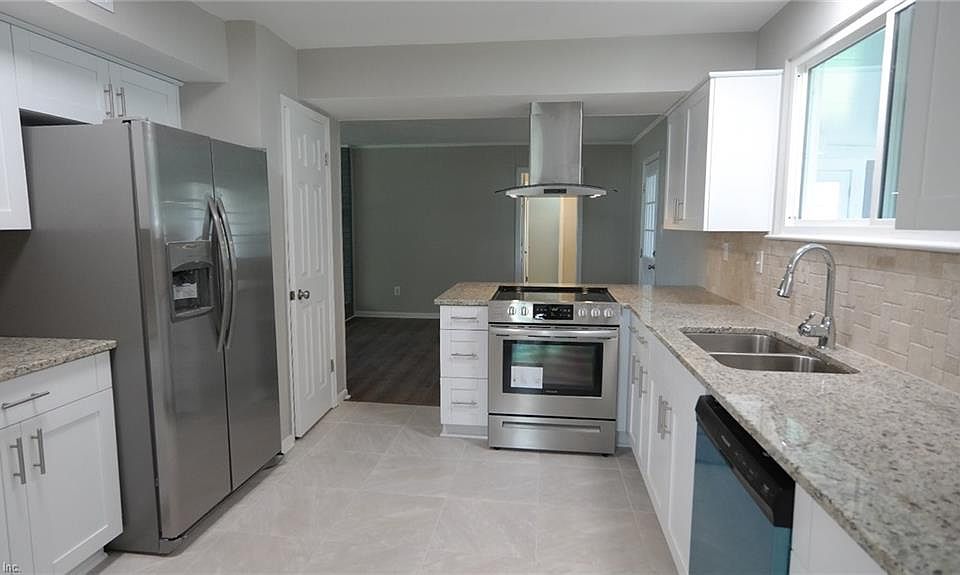 Nice,extensively renovated home on large over .2 acre lot in Central VB.This home is not in a flood zone. New architectural roof on main house & new roof of large covered front porch, new water heater, brand new kitchen with granite & full stainless appliance package.New energy efficient HVAC and main house windows.Formal living and dining, nice great room with electric fireplace with stylish brick surround.New solid surface wood flooring first floor living areas, new carpet 2nd floor along with new tiled baths. You'll love the huge sunroom that has tile flooring and new electric heat with access to patio, it's great expanded living area with lots of newer windows. New vanities in the full baths. Impressive primary suite with ensuite bath and walk in closet. Oversized attached garage and a full white vinyl privacy fenced backyard rounds out the long list of features you'll love and enjoy everyday. Google Maps says 4 min to Mt Trashmore, 10 min to Lynn Mall, 9 min to Town Center.