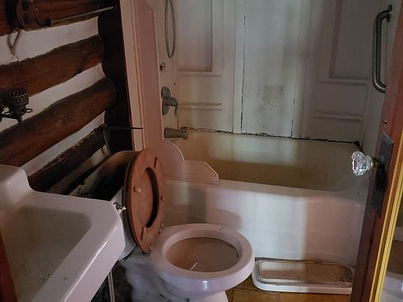 Rustic, charming and cute LOG CABIN home. Weekend get-a-way or year round living your choice. Sit on the back porch and listen to the creek running below.