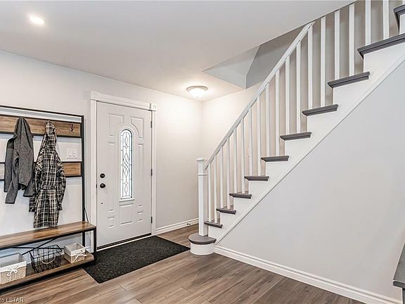 Prepare to fall in love. Nestled on a quiet tree lined crescent in popular Southcrest this gorgeous South London home is ready for new owners. The main floor offers a cozy living room with an updated gas fireplace, a fabulous open design kitchen with quartz countertops, tile backsplash, additional storage and a walk out to newer deck overlooking the large treed yard. On the main level you will also find a large bedroom with a walk in closet and cheater ensuite featuring a designer soaker tub, large walk in shower, double sinks and a floating vanity. The upper level boasts three more bedrooms and a full bathroom. Unspoiled lower level offers plenty of storage room and space for future development. Lots of recent updates and renovations in this home including a metal roof and leaf guards (2018), exterior waterproofing membrane for basement walls 2021, concrete driveway, front and back decks and shed all 2022. Extensive renovation of home in 2017 included furnace and a/c, updated wiring including panel, plumbing brought up to code, basement fully insulated, energy star windows, laminate and ceramic flooring installed and LED fixtures throughout. There's nothing left to do here but unpack your bags and make this amazing home your own. Open houses Sat & Sun 2-4 April 27/28. Offer review date is Monday April 29th.