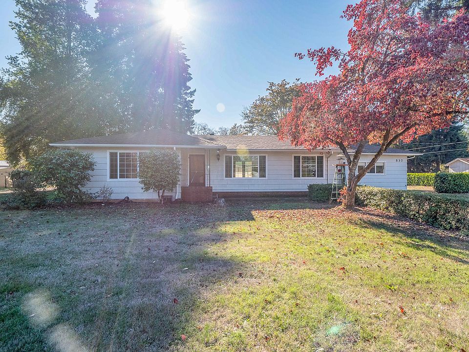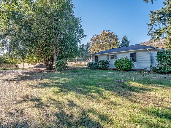 Well-built home on 1 acre in desirable neighborhood close to North Umpqua River. This home offers 3 bedrooms, 2 bathrooms, original hardwood floors, & large living room with wood stove & French doors to covered patio. Double sink main bath. Gas range, hot water, & central air heat. Newer roof, fenced, & irrigated garden area. Large pass-through shop with 12 foot doors & large attached workshop with lean-to. Lots of parking, good separation from neighbors, great rural neighborhood.