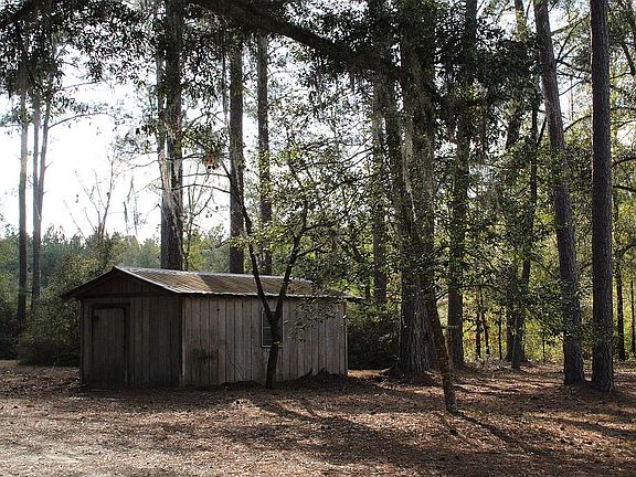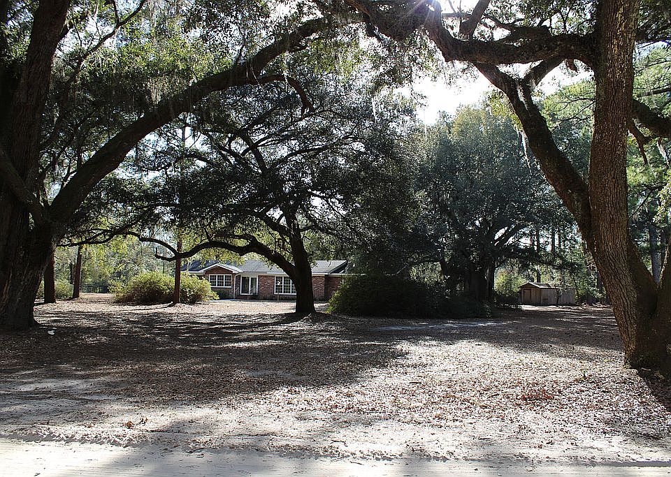 Beautiful brick home on 5 acres nestled beneath majestic live oaks. Large barn, open shelter, storage buildings, and a green house. Well and septic tank. Located on Riverside Dr. (dirt road) approximately 5 miles from Guyton... RARE FIND!