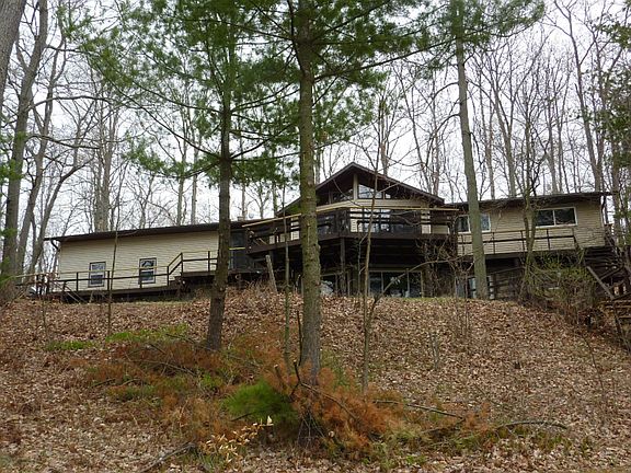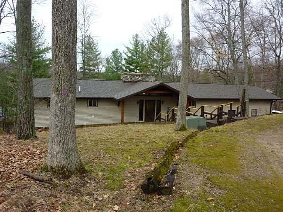 5 acre wooded parcel with frontage on Hunter Lake and Flat River. Spacious walk-out ranch with attached garage. Stone fireplace in living room and family room. Hard wood flooring on main level.Open stairway to lower level walk-out.