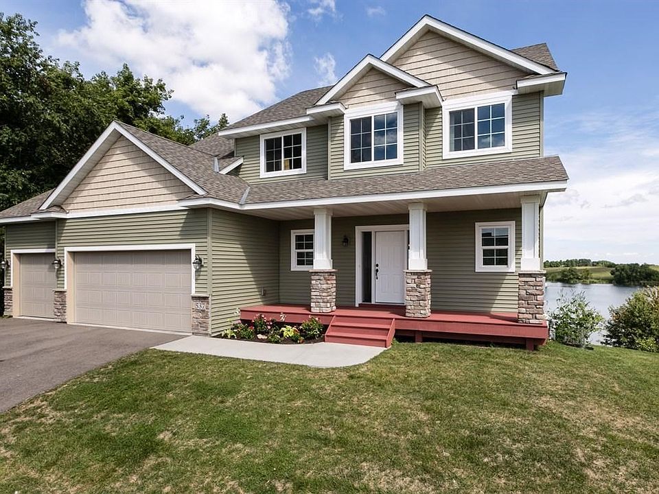Gorgeous two story on lovely tree lined cul-de-sac. Beautiful open water views. Wonderful upper level master suite features tray vaults and walk in shower. Two more generous sized bedrooms with full bath and laundry room complete the upper level. Main level offers 9 foot ceilings, open floor plan with hardwood floors and granite. Fantastic mudroom with built in boot bench. Lower level also features 9 foot ceilings with fourth bedroom and full bath, large rec room and bonus/office/storage room.
