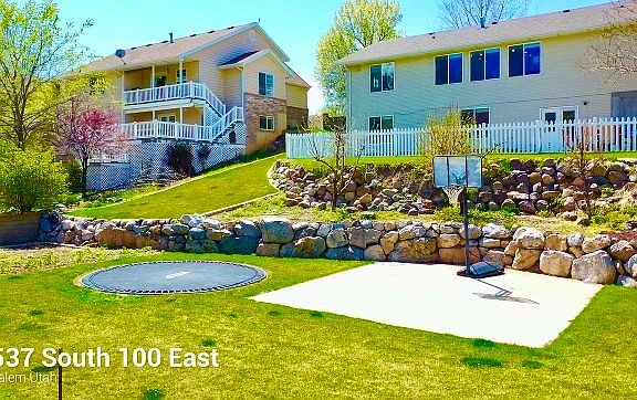 No Showings until Grand Open House Saturday May 2 from 11:00-2:00. Make sure to check out 3D virtual walk through link, and drone video in the tour button at the top! Move in ready rambler in the heart of Salem. This home features a mother-in-law suite, formal living room, spacious kitchen with open great room concept, tile floors and granite counter tops, custom cabinets, kitchen island with seating, water filtration system, new carpet, and new paint. Master bedroom is on main floor, featuring separate jacuzzi tub and shower with tile surrounds, walk in closet, and double sinks. Other great features about the property are, professionally finished basement, dual furnace and double water heaters, oversized bedrooms, lots of storage space including cold storage, concrete R.V. pad with 10x20 underground parking garage, walk out basement, Mother-in-law suite has separate entrance of its own, underground trampoline for kiddos, built in dog run, chicken coops and rabbit enclosures, sand box, garden area along with pear, peach, and gala apple trees! .33 acre lot backs right up to an amazing green meadow with un-obstructed views of the mountains. Serene views ~You will never have neighbors behind you!! Take evening walks with your loved ones to the Salem pond 2 blocks away, and enjoy basketball games with the children on the concrete pad in back yard.. This home has it all, and is affordable!! Buyer to verify square footage.