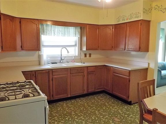 Large corner lot with mature trees! Features large kitchen with newer oak cabinets, built-in's, french doors to bedroom, fenced yard, 1 car garage. Walk to Columbian Park!