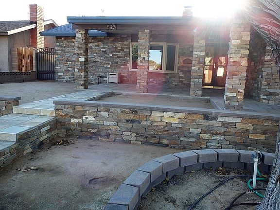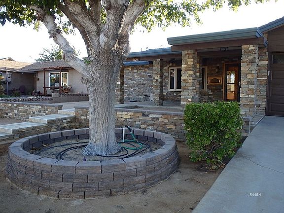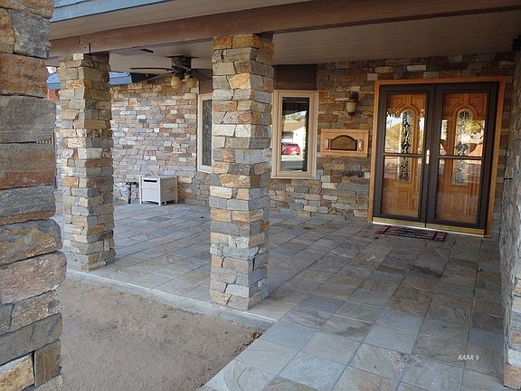 Amazing home w/beautiful stacked stone veneer siding on front and rear patios complete with pillars.Storm drs cover gorgeous double oak drs for a grand entry..Spacious living rm features bay windows, magnificent fireplace w/gas log. To the left is the master bdrm:lge & carpeted w/door to back patio.Amazing cedar lined custom closet(all bedrms have them!)Enter the "throne rm" w/elegant chair covering toilet.Shower is completely tiled as is the floor;glass drs.Counter top has 2 square sinks with storage above and below.Remodeled kitchen has tile floors;granite counters & raised center island complete w/foot rail & lots of storage.Bosch dw. Above is stain glass ceiling w/fan.Lots of extra cabinets & shelves.All windows are upgraded.Carpeted dining rm in center.3 guest bedrms:2 are carpeted;one has oak hardwood floor.All 3 have mirrored closet drs, pleated or Roman shades & ceiling fans.Guest bath features stained glass window,tiled tub enclosure & floor.New 3 ton dualpac on grd installed by Gentry.Insulated garage dr.Back patio has lge jacuzzi hot tub & Greek columns to enjoy the view.Block wall on 3 sides protect from the wind;palm tree & area for garden.Perfect for King & his Queen!