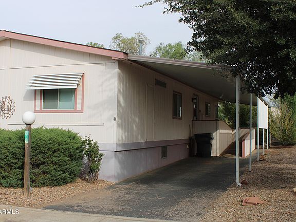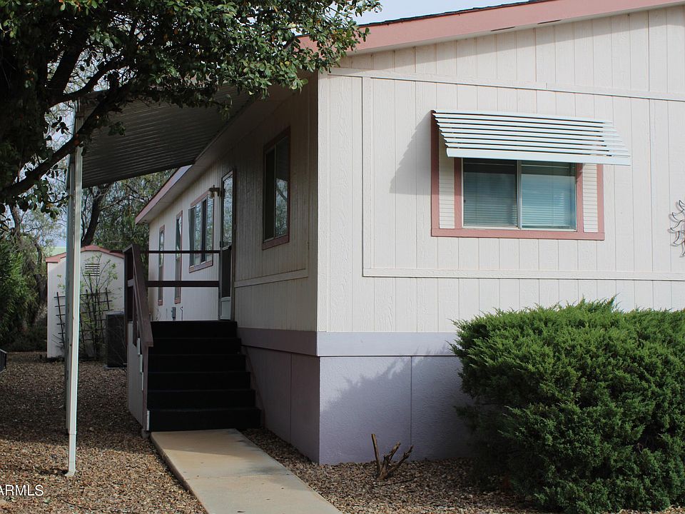 Well maintained manufactured home that sits on leased land in Sierra Vista Mobile Home Village. Split floor pan. Newer laminate flooring. Ceramic tile flooring in bathrooms. Covered back deck made from engineered wood. Fenced back yard. Gas Heater, Stove and Water Heater. A/C. Breakfast nook and Breakfast Bar in the kitchen. Lots of kitchen cabinets. Electric fireplace in Great Room. Lot rent is $492.50 a month which includes water, sewer, garbage collection, cable tv, common area and street maintenance.