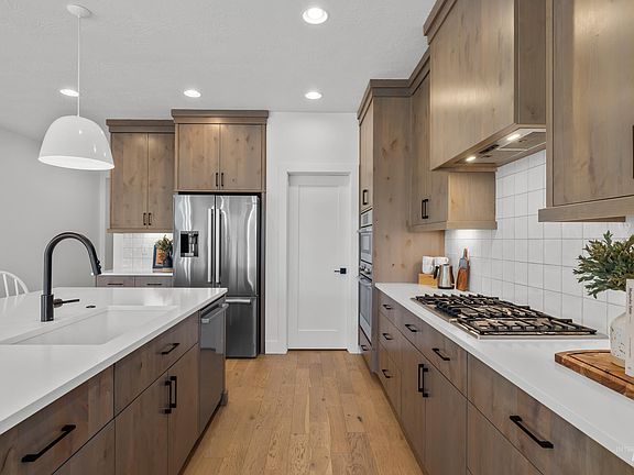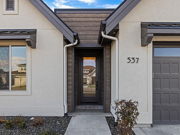 Experience resort-style living in the prestigious gated community of Riverstone, nestled along the Boise River and neighborhood ponds. The Rincon, single-level floor plan by Berkeley Building Co. offers 3 bedrooms, a versatile den, and 2.5 bathrooms. Designed with energy efficiency in mind, this home provides comfort and sustainability without sacrificing style. The kitchen features custom cabinetry, Bosch appliances, quartz countertops, and a walk-in pantry. The great room boasts hardwood floors, a fireplace, and two sets of sliding doors that open to a large covered patio, offering the perfect space for relaxation or gatherings. Riverstone’s five-star resort amenities include a private Beach Club for kayaking and paddle boarding, scenic ponds, walking trails, a modern clubhouse, a pool, a gym, and direct access to the Boise River. This home is a perfect retreat, blending impeccable design with a luxurious resort-style lifestyle.