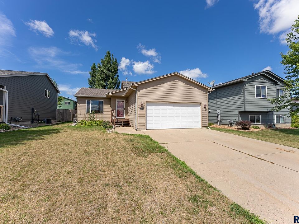 Your West side multi-story dream! Walking into a bright living room that leads you to the open and spacious kitchen. On the upper level you'll find two large bedrooms and a bathroom with tons of storage space. The lower levels holds your oversized master bedroom with double closets. The master bathroom has double shower heads, a built-in vanity, and a heated floor for those Winter mornings! Built in speakers in the family room and hardwood throughout. A privacy fence in the backyard with a nice, low deck and concrete patio. You won't want to miss out on this one - come by for a look or message Alexia with questions and/or scheduling a walkthrough (605)-496-5181