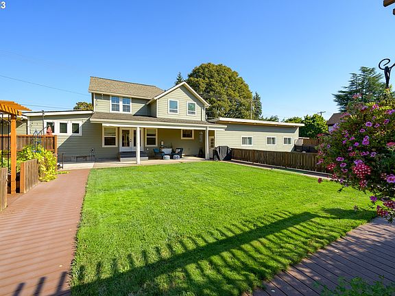 New Price & Amazing Value! One of the finest interiors in all of McMinnville that you must see in person. This spacious property, with its large backyard and multiple bedrooms, is ideal for those seeking ample room and comfort. Built in 1932 and meticulously renovated, its interior features exude timeless elegance with wainscoting, fine wood moldings, 5 sets of French doors, cedar paneled ceilings, and wood-encased picture windows. This home features six spacious bedrooms, including two luxurious primary suites with spa-like bathrooms, ensuring ample space for everyone. The kitchen is a culinary delight with custom cabinetry, farmhouse sink, granite countertops, gas cook-top, and butler's pantry, perfect for family meals and gatherings. An entertainer's dream awaits in the addition, featuring a custom bar, pool table, 374-bottle wine cellar, and handsome card room. Versatile design with two primary suites with spa-like baths, as well as 4 more bedrooms. Relax in the pristine backyard under the covered patio or in the beautiful hot tub; Trex decks, pergolas, raised bed gardens, 3 zone irrigation, and timed lighting. An attached golf cart garage accommodates your membership to Michelbook Golf Course nearby. Location is key, only four blocks from Linfield University and 1.6 miles from Downtown McMinnville.