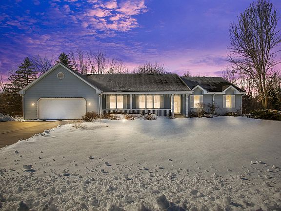 Beautiful Ranch with walk-out lower level on 1.55 acres! Open concept kitchen has lots of storage and deep cabinets, and patio doors leading to your composite deck with a gorgeous view of your property. Large Formal Dining room offers a beautiful buffet and Living room. Family room features an abundance of natural light, vaulted ceilings, Fireplace, and skylights. Enjoy your master suite that features a walk in closet, Full bath with stand in shower and a Jetted tub! This home is truly set apart from the rest boasting a walking trail to the subdivisions 8 acres, creek and private pond that's stocked and maintained by the DNR. Check out the Drone video for a true experience of living right off the beaten path, and have a peaceful/secluded feeling in your own backyard!
