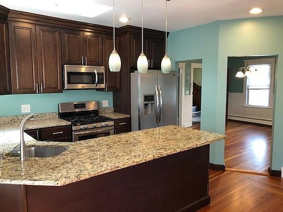 Nice two family located near police station and across from Barry Field. Each unit has 1200 sq ft and oversized living rooms. First floor has a fully updated modern kitchen, hardwoods, two beds. Both Tenant At Will. Second floor has an older kitchen w/ two beds and a walk up attic area with an additional heated 800+ sq ft that just needs to be finished if you need the extra space. Two staircases in and out of the third floor. One central heating system. Two gas HW heaters. Two laundry set ups in the basement. Roof replaced at end of 2007. Replacement windows. Clapboard siding. Two car garage. Small rear yard area for grilling. Conventional Financing only. Some paint and finish work and this house will do you well for years to come. Great owner occupied home or investor property.