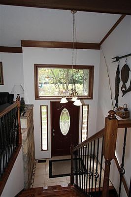 Fabulous well-kept home with wonderful details. Elegant entrance w/stone accent wall that rises up to family room and doubles as a planter. Updated Kitchen, Hardwood floors with tile accents in Dining room,Familyroom w/stonefireplacethat matches stone planter, doors to large deck from Dining room and Master. Spacious Master w/2 large closets and updated master bath with ceramic tile shower, transom windows, andbuilt-ins. Basement with living area, play area, half bath, laundry and doors out to patio. Retreat like setting. Wonderful neighborhood. Whats not to love?