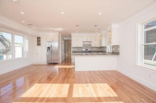 Renovation from the studs. Located in the Jeffries Point area minutes from T, Water taxi, park, tennis court, yacht club, Route 90. East Boston residents pay only .40 for the tunnels. Come see this gorgeous and extremely bright 2 bed 2 bath. Stainless appliances, hardwood floors, sliding glass door looking into the harbor. Washer and dryer hook ups, extra closets, pantry, and much more. Master bedroom features walk in closet and en suite bathroom. Resident sticker for parking on street is free. Additional storage in basement. Last month negotiable for the right tenant. Open house Saturday 1:45pm-3:00pm and Sunday 12-2pm.