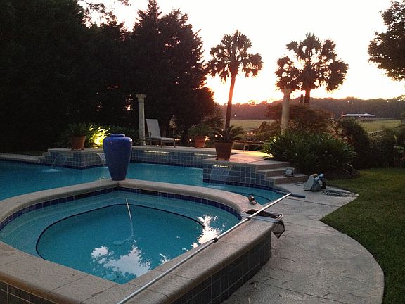 A private oasis in the heart of Talahi Island, tucked behind a long scenic driveway! This completely updated deepwater home on Turner Creek boasts gorgeous waterfront views throughout the entire home. An inground salt water pool with hot tub is perfect for entertaining. A private dock and boat hoist is ideal for water lovers. A solarium extends over the entire backside of the home lending to tons of natural light and giving the indoors an airy feel. The gourmet kitchen is a chef's dream with a large island, double ovens and gas range, granite counter tops, and stainless steel appliances. The spacious master bedroom includes a sitting area and large walk in closet. The master bathroom features a garden tub, separate shower and dual vanities. The living room has vaulted ceilings, exposed beams and terra cotta flooring. An automatic gate leads to a detached garage behind the house.