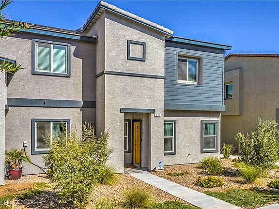 "Welcome Home! Immaculate Henderson townhome, styled like a model! Featuring 3 bedrooms, 2 full baths, and 1,417 sq ft, with an open floor plan and large bedrooms in an intimate community. Chic contemporary upgrades throughout, including ceiling fans, faucets, shower heads, mirrors, shelving, door knobs, hinges, and stoppers. A custom design wall adds elegance to the dining area. Built in 2022, with a community pool. Additional upgrades include a water filtration system, hard water softener, tankless water heater, washer, dryer, and refrigerator—just move in! Perfect as a primary residence or vacation retreat. Close to shopping, restaurants, casinos, and healthcare!"
