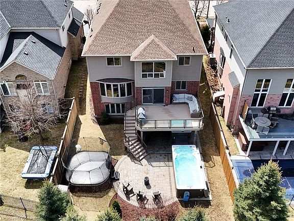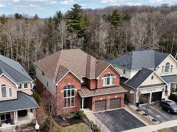 Set on a beautifully landscaped 50' lot backing onto 50 acres of protected forest, this stunning 5+ bedroom, 5 bathroom executive home offers over 4750 square feet of luxurious yet functional living space across three levels—plus a backyard oasis perfect for swimming, fires, jumping and relaxing in the hot tub. The bright and airy main floor features a dramatic 18' cathedral ceiling and soaring window in the living room, a formal dining room ideal for entertaining, and a versatile office/library/toy room. The recently updated kitchen and great room offer the perfect blend of style and comfort, with classic cabinetry, stone countertops, stainless steel appliances, and an eat-in area with direct access to a spacious deck. Oversized windows line the back of the home, filling the space with natural light and showcasing tranquil forest views. The open-concept layout flows into the great room, anchored by a sleek gas fireplace with slate surround. Upstairs, you'll find four generously sized bedrooms, including a massive primary suite with a spa-like ensuite and large walk-in closet. Two bedrooms share a Jack & Jill bath, while the fourth has access to their full bathroom. A second-floor laundry room adds convenience. The finished lower level offers a large recreation room, fitness area (or flex space), fifth bedroom, ample dedicated storage and full bathroom. A walkout leads to the private backyard oasis with multiple gathering areas, a 17-foot swim spa, 6 person hot tub, stone firepit area, and second-level composite deck with glass railings—perfect for enjoying forest views with no rear neighbours. Located in one of Kitchener’s most desirable, family-friendly areas with the perfect balance of nature and convenience. Nestled at the edge of Topper Woods, this quiet crescent offers scenic trails, protected forest, and executive homes—just minutes from top-rated schools, shopping, restaurants, and highway 401 access.