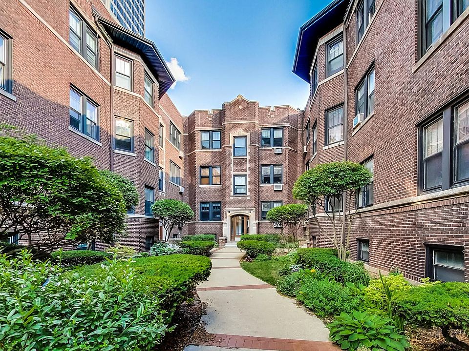 Welcome home to this adorable courtyard brick building located in prime Lakeview! Sunny condo with two spacious bedrooms with great closet space and storage. Hardwood floors throughout with neutral paint colors, this unit is move-in ready! Home features living/dining room combo, updated bath & kitchen with 42" cherry cabinets, granite counters, built in wine rack, newer windows, wood burning fire place, and small deck off kitchen. Second bedroom with french doors is a perfect office space for working from home. Heat included in rent, storage & bike room. Walk to everything! Close to Wrigley, shops, restaurants, lake, and park. Easy access to Red Line, buses, and Lake Shore Drive. No rental cap and investor friendly.
