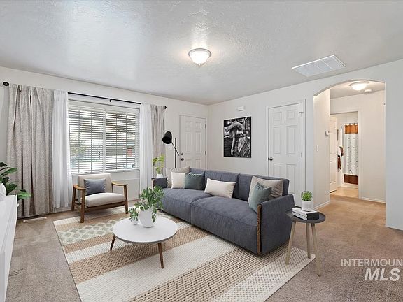 Come check out this lovingly maintained, better than new, patio home located in beautiful, Meridian, Idaho! It is move in ready with 3 bedroom/2 baths and 1311 square feet of living space. The kitchen is nicely sized w/breakfast bar, stainless steel sink, stainless steel appliances (including refrigerator & counter microwave)-Eating/dining area is next to the sliding doors that enter to back patio. Enjoy quiet mornings (or evenings) on the secluded covered patio area that faces West. There is just enough side yard(s) to have a few planter boxes, flower pots, etc., and it is fully fenced. The dedicated laundry room is off of the kitchen and is access to the 2 car garage..(Alley Load) No need to buy a washer/dryer -They are included as well!! All windows have blinds/curtains. What a perfect starter home or "down-size" home! Be sure and check out the iGuide tour/floorplan. *photos w/furniture are digitally staged -except dining area*