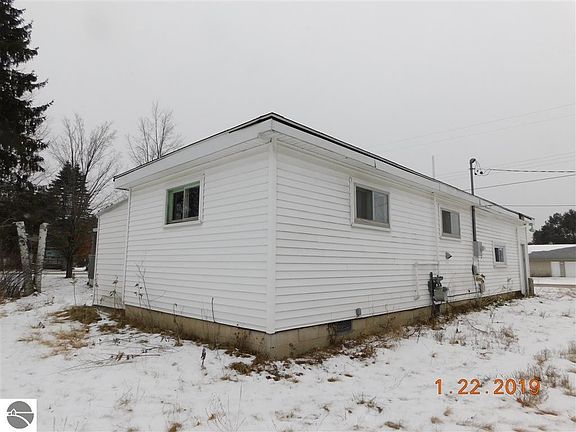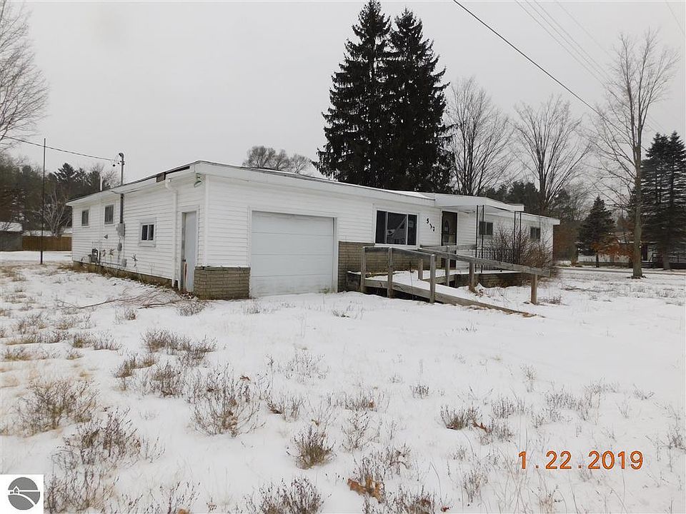Modest older one story home with split floor plan 1 and 3/4 baths 3 bedrooms kitchen and kitchenette dining room main kitchen has a lot of storage cabinets large living room 1st floor laundry partial basement with inside and exterior entrance attached 1 car garage. Large corner lot walking distance to downtown Evart business district. Home is being sold as is where is how is. This needs to be a cash sale due to the condition of the property. Front entry has a ramp up to the porch.