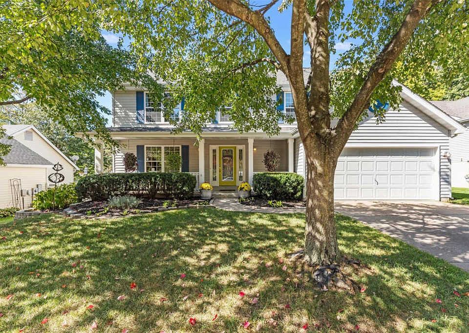There's so much to love in this wonderful 2-story, starting with bamboo wood floors & freshly painted walls that lead you to the granite counters, herringbone tile backsplash, updated lighting, & stainless steel appliances, including a 5-burner gas range & French door fridge, in the spacious kitchen. Gather everyone together in the cozy family room with a gas fireplace & bay window. Handy main floor laundry...washer & dryer included! Upstairs are 4 bedrooms with updated carpet, including the owner's suite with soaring vaulted ceilings, walk-in closet, & private bath with dual sinks, corner soaking tub, seated shower, & updated tile floors. Entertain in the finished lower level rec room w/laminate plank floors & a beautiful wood wet bar. Fridge, bar tables & chairs stay. Fully fenced, level yard with a fun deck & patio that includes a wood-burning pizza oven! Great neighborhood next to Laurel Park & served by Francis Howell (North) Schools. 13-month home warranty included. See it today!