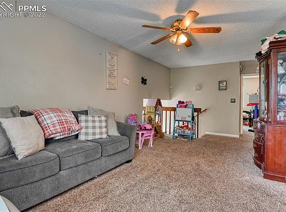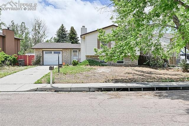 Spacious home and ready for someone to make it their own. Inviting entry that walks out to large back yard with deck. Upper level boast ~Eat in kitchen with new SS refrigerator, granite sink and plenty of cabinets, Living room, two bedrooms and full bath. Lower level has spacious family room with wood burning fireplace, two additional bedrooms, laundry area and bathroom. Newer roof* two storage sheds* Room for RV parking & beautiful mature trees. Close to Peterson AFB, Ft Carson, Amazon, fire department and I-25. Walking distance to elementry school.