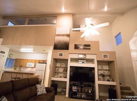 This cozy, 1 1/2 story open floor plan home is conveniently located near 1604. Has new carpet throughout! New paint outside in March 2018. Inside AC unit replaced in 2017. Loft space upstairs makes a great reading nook with built in bookshelves! Beautiful built-ins in the living room! Master suite with walk in closet and double vanity is located downstairs. Security system (to include cameras) is owned and will convey. Schedule a showing as it will not last long!