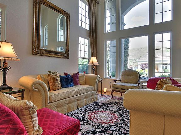 Beautiful, immaculate Crystal Ranch home w/curb appeal galore! Entry and living room with high ceilings, updated kitchen w/ newer SS appliances, granite counters, center island, breakfast bar and sunny breakfast area opens to inviting family room with gas fireplace. Ensuite BR with walk-in closet, powder rm and laundry rm downstairs. Spacious Master BR retreat with sitting area, fireplace & built-in entertainment center. Gorgeous remodeled master bath w/ sunken tub, stunning marble tile shower, dual sinks, granite counters, towel warmer and more! 2 other guestrooms upstairs with doors leading to a charming balcony and the 5th bedroom being used as an office with built-in desk and bookshelves. Inviting backyard and patio with outdoor kitchen and bar, tranquil fountain and view! Beautiful wisteria planted in wine barrels complete your oasis. Other features include plantation shutters, crown molding, hardwood floors, 3 car garage with epoxy flooring and with lots of built-in storage.