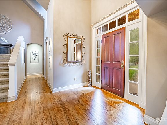 Overlooking the peaceful pond and quiet park, this luxurious custom-built home is a rare find—exceptional quality build, perfectly maintained, and move-in ready. The timeless style w/ modern updates creates a one-of-a-kind living experience. Comfortable main floor living w/ spacious great room, vaulted ceilings & striking fireplace. The renovated Chef's kitchen features new granite countertops, appliances, & impressive butler's pantry/mudroom, ideal for PNW living. Renovated primary bath features heated floors, custom tile, new tub, & expertly designed closet system. Many more upgrades including completely enclosed deck w/ glass railing, new roof, furnace, & professional landscaping w/ custom lighting. The attention to detail is unmatched!