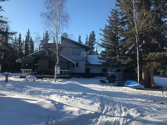 MOTIVATED SELLER!!! Email: revkeith99@gmail.com or call (979)716-9910 Beautiful home set on heavily wooded 5 ac lot just 2 miles out of town. This mostly remodeled home has three living rooms, an open concept kitchen on main floor. Large covered porch along with a 2 car attached and heated garage. There is a 24x24 pole barn and a green house with waiste high flower beds ready for planting. A horse shed and corral along with insulated chicken house. This house has all you need to make for a true Alaska living experience. Propane stove in the kitchen and propane on-demand water heater with electric water heater for back-up. The house has a large wood stove and a fuel oil forced air furnace along with two toyo style heaters in the fully finished basement. The upstairs boasts an office space and master suite with living area.