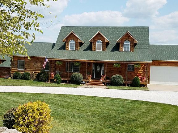 This gorgeous home, freshly stained & sealed, has a warranty that transfers to new owners! Move-in ready, you'll enjoy beautiful views from the full length covered deck or covered front porch, and relax inside with an open floor plan that is energy efficient, spacious and has all those extras. With nearly 3900 finished sf & an additional 1000 sf of heated/cooled storage, this 5 bedroom, 3.5 bath home has space for everyone. Perfect set up with a split floor plan, family room in the basement, and large bedrooms. Extras include saltless water softener, two full size ovens, gas range, furnace humidifier, dual zoned heat/air, a 25x40 shop with plumbing for a bathroom, & two separate garages at the main house. Tons of closet space and storage. Even the trampoline stays. Bring your horses!