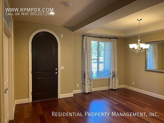 If you have any questions regarding this home, please contact Residential Property Management, Inc. at info @ rpmpdx . This spacious and elegant home is perfect for both relaxation and entertaining. Enter to an open-concept layout with a versatile den (or potential 5th bedroom), a full bathroom, and a formal dining room with granite butler's pantry access to the kitchen. The gourmet kitchen is a chef's delight, featuring granite countertops, a large island, stainless steel appliances (including a gas cooktop, wall oven, microwave, and French-door refrigerator), and a breakfast nook. The kitchen sink offers a view of the backyard, and the walk-in pantry has ample storage space. The inviting family room offers floor-to-ceiling windows for abundant natural light, custom shelving around the gas fireplace, a mounted 55" LCD TV, and wiring for all electronics. The bonus room with French doors upstairs provides additional living space and storage. The primary suite impresses with a tray ceiling, a two-way gas fireplace, and a luxurious five-piece bath, including dual vanities, a soaking tub, an oversized shower, and a spacious walk-in closet. The additional bedrooms are generously sized, and the laundry room includes a utility sink and folding counter. The hall bath features dual vanities and a linen closet for added convenience. Located in the desirable Arbor Heights neighborhood, the community amenities include a seasonal pool, sports court, and park. It is minutes from Bethany Village, Bethany Village Athletic Club, major employers like Nike and Intel, Providence St. Vincent Hospital, Kaiser Permanente West Side Medical Center, and Sunset Medical Office. Easy access to Hwy 217 and US 26. Screening Fee: $64.95 per occupant aged 18 years or older. Lease Start Date: Must be within 5 - 14 calendar days following the approval of your application. Lease Duration: The lease ending date is 09/05/2025. Security Deposit Minimum: $3,650.00 Security Deposit: Maximum: $9,125.00 Pet Information: Pet Rent: $75.00/month Max: 1 Small Dog under 10 lbs. only. No additional pets or cats will be considered. Pets MUST be at least 2 years old. No exceptions ESA and Service Animals are Welcome. RENTERS INSURANCE REQUIREMENT: Before the lease commences, the tenant must provide proof of renter's insurance with a minimum coverage of $100,000 for General Liability. Manager/Agent complies with ORS 90.222. INFORMATION DISCLAIMER: While we try to provide accurate information, we cannot guarantee its accuracy or reliability. Prospective applicants should independently verify all details about the property, neighborhood, and surrounding community before applying. We do not offer warranties or guarantees regarding the accuracy or timeliness of the information provided. Please be aware that pricing, lease terms, availability dates, pets, and others are subject to change without notice. We strongly recommend you review the marketing details again before applying. Smoking and vaping are strictly prohibited in our rental properties, including homes, condominiums, ADUs, and townhomes. NO GUARANTEE: We market and lease our properties in their present cosmetic state. Neither the Agent nor the Owner commits to any interior or exterior improvements, including, but not limited to, interior painting, flooring, fixture or landscaping enhancements, yard maintenance, or similar improvements before occupancy. Our homes are prepared for occupancy, ensuring high cleanliness standards, including sanitized surfaces and carpets. Repairs are completed per ORS 90.320 regulations. The Agent/Manager determines cleanliness standards, with their decision being final. 2nd Floor Laundry Room 3 Bathrooms Butler Pantry Custom Built In Cabinets Double Vanity Sink Extrodinary Walk In Closet First Floor Open Concept Floorplan Formal Living/Dining Room Gas Fierplace Between Primary Bedroom And Bathroom Gas Fireplace Gas Stove Top Office/Flex Space/ Workout Room Primary 5 Piece En Suite Bathroom Private Water Closet Quartz Counter Tops Second Floor: Carpeting Spacious Kitchen Island Stainless Steel Dishwasher Stainless Steel Refrigerator Stainless Steel Wall Microwave Stainless Steel Wall Oven
